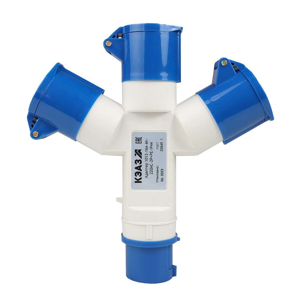 Доставка Адаптер силовой трехлучевой 1013-16А-6h-220AC-2P+PE-IP44