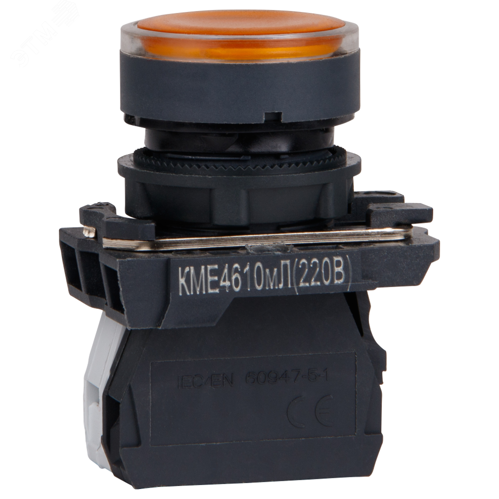 Описание Кнопка КМЕ4610мЛ-220В-ж-лтый-1но+0нз-цилиндр-индикатор-IP65-КЭАЗ