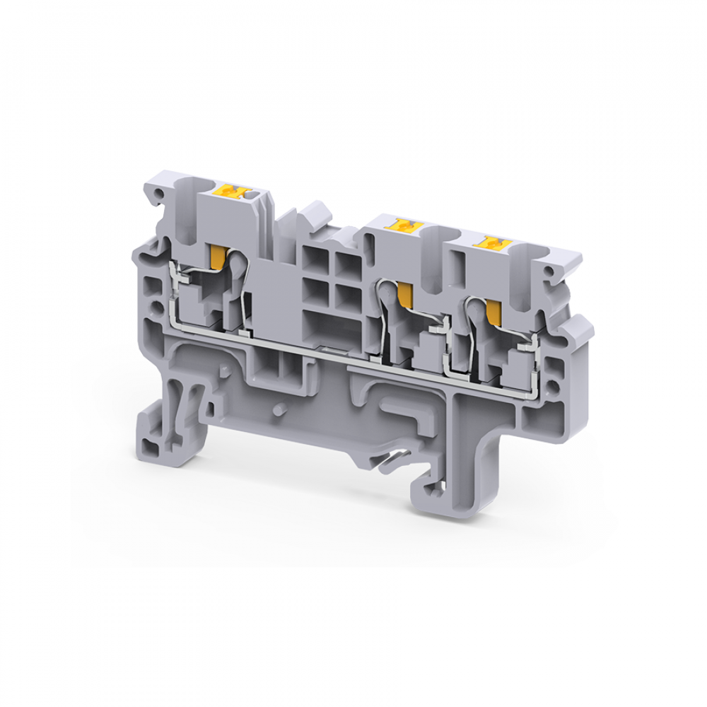 Клемма с 3-мя контактами push-in OptiClip СP-2,5-TRIPLET-I-серый, Клемма на DIN-рейку