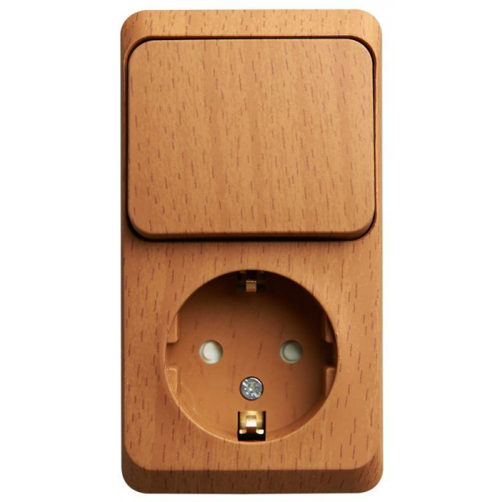 Описание Systeme Electric Этюд наруж Бук Блок: Розетка с/з со шторками + выключатель 1-клавишный