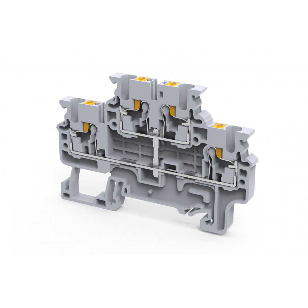 Этажная клемма, 2 этажа, межэтажное соединение, тип фиксации провода: Push-in, номинальное сечение: 2,5 мм кв., 24A, 1000V, ширина: 5 мм, цвет: серый, тип монтажа: DIN35