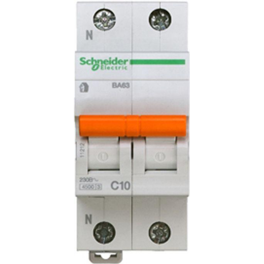 Описание Выключатель автоматический модульный 2п (1P+N) C 10А 4.5кА BA63 Домовой SchE 11212