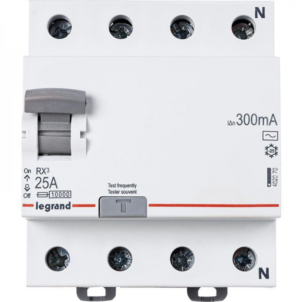 Выключатель дифференциального тока (УЗО) 4п 25А 300мА тип AC RX3 Leg 402070, Дифференциальная защита: УЗО, дифф блок