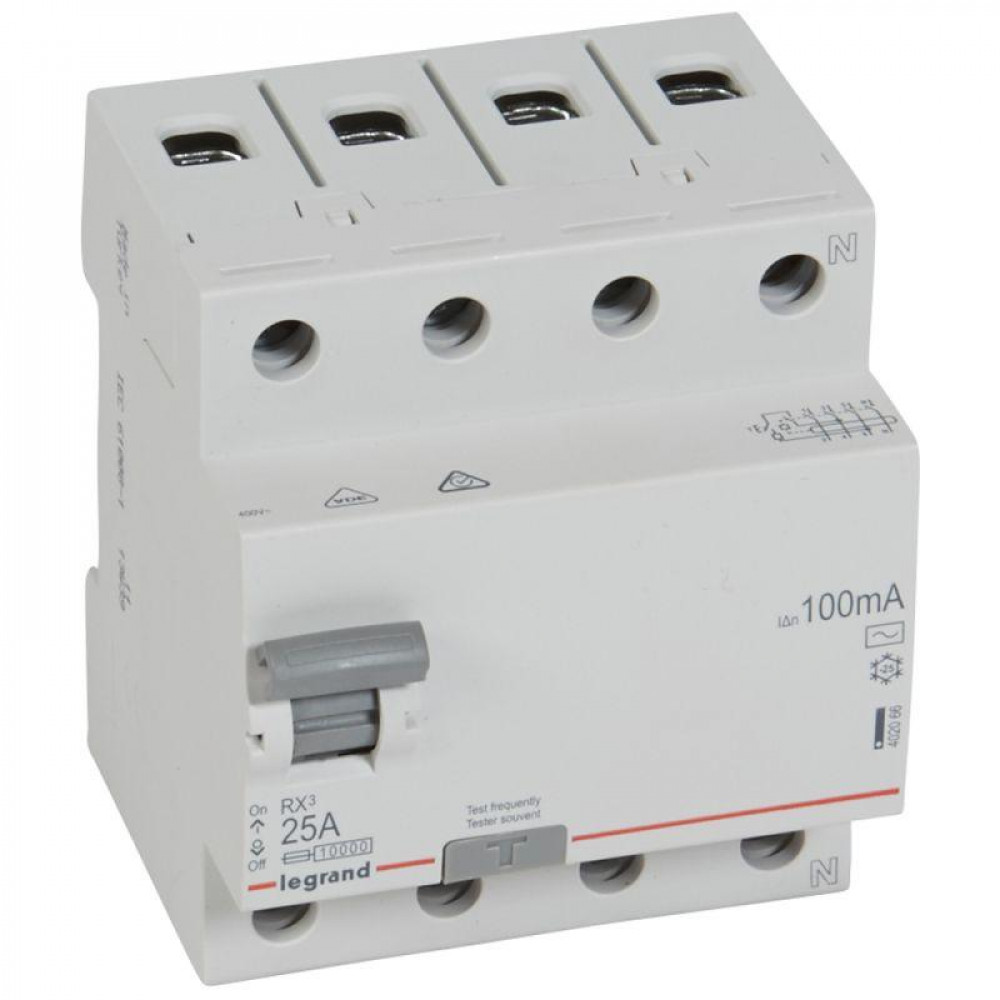 Выключатель дифференциального тока (УЗО) 4п 25А 100мА тип AC RX3 Leg 402066, Дифференциальная защита: УЗО, дифф блок