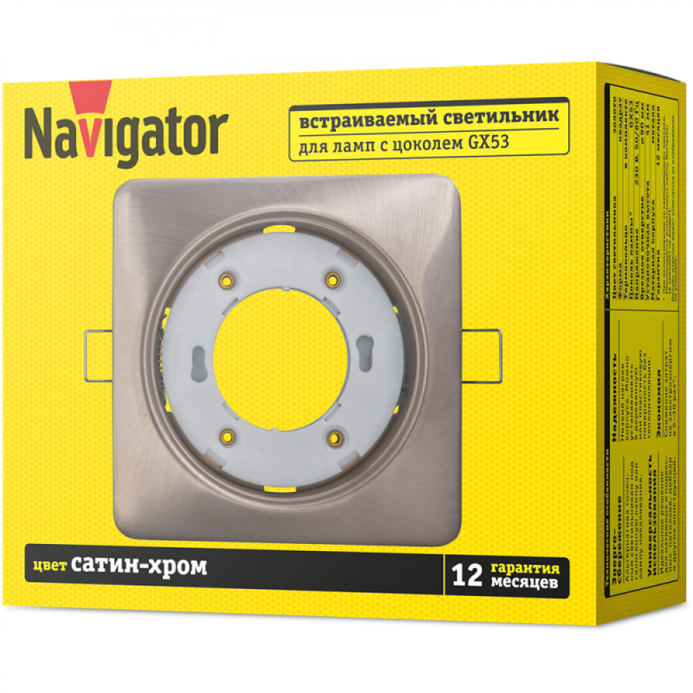 Описание Светильник 93 022 NGX-S2-004-GX53 квадрат сатин/хром.Navigator 93022