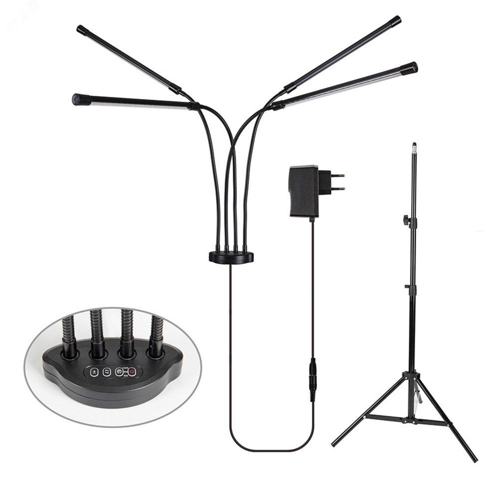 Доставка Светильник светодиодный для растений ULT-P32-36W/SPLE/TM/40 IP40 BLACK QUAD с таймером на штативе спектр для фотосинтеза Uniel UL-00008905