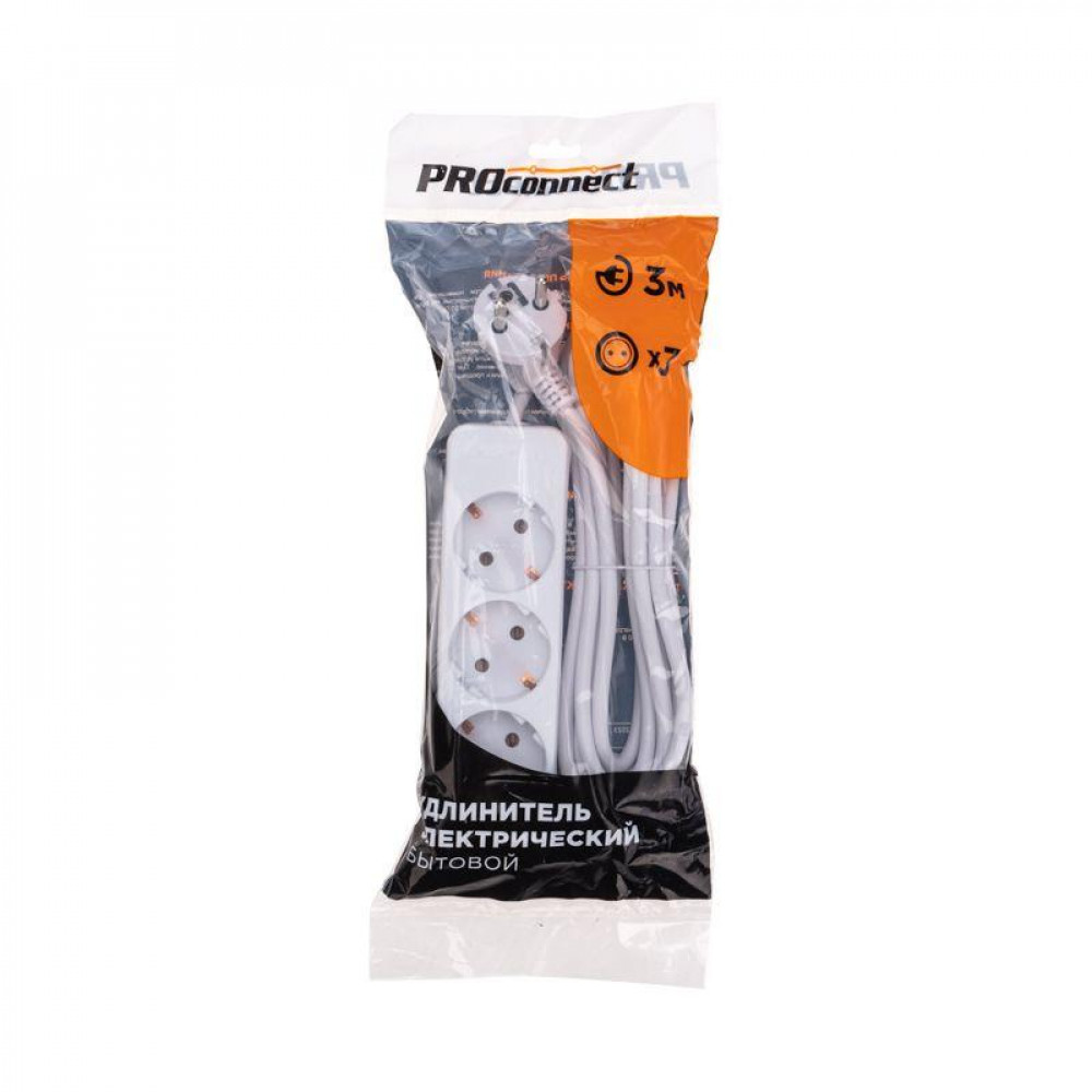 Доставка Удлинитель 3 гнезда 3м 3х0.75кв.мм с/з бел. PROCONNECT 13-4209