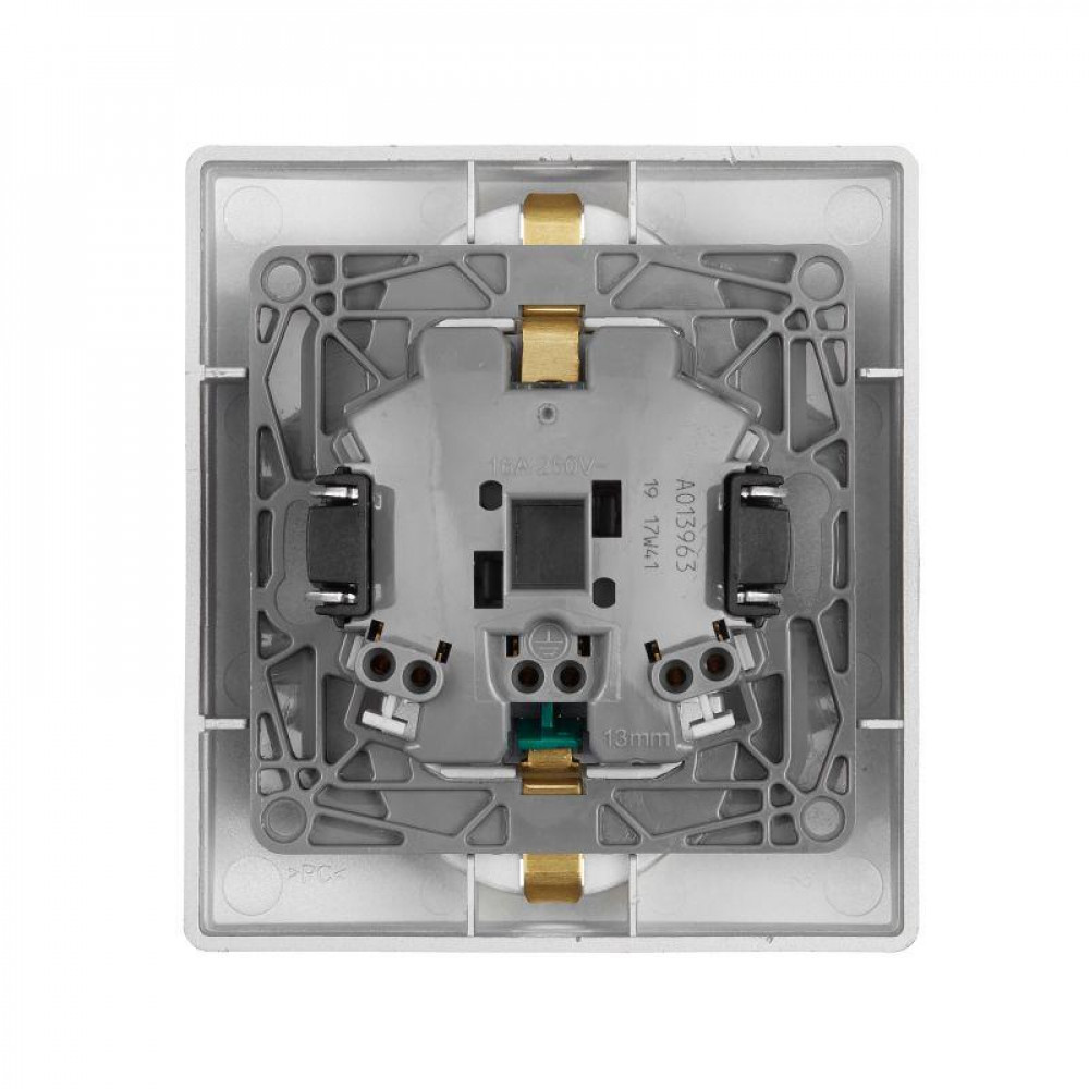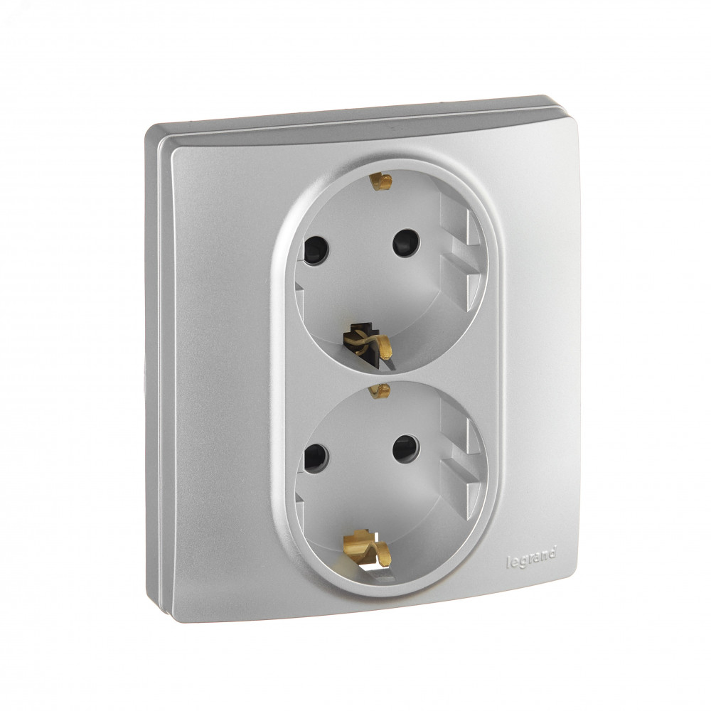 ETIKA Розетка двойная с заземлением со шторками алюминий автоматические зажимы 672433, Розетка скрытого монтажа