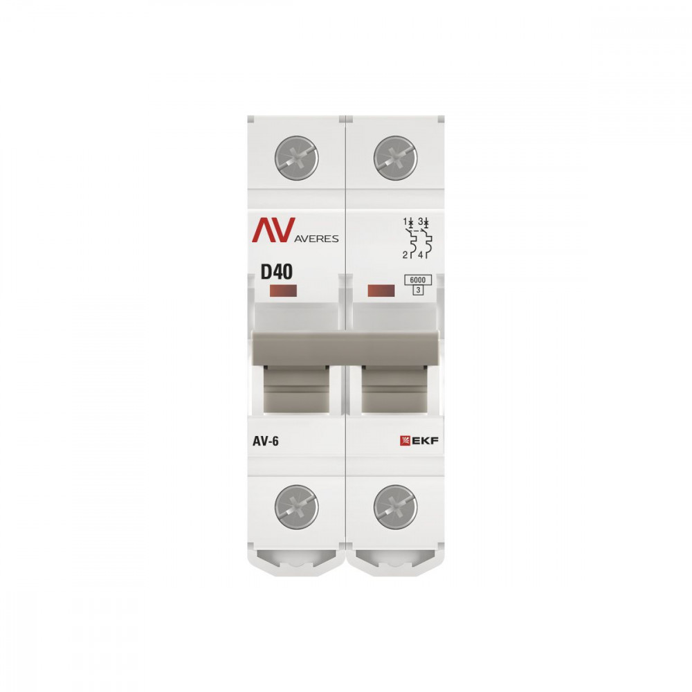 Выключатель автоматический AV-6 2P 40A (D) 6kA EKF AVERES mcb6-2-40D-av, Выключатель автоматический модульный