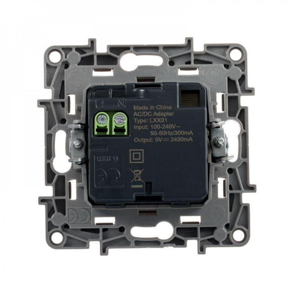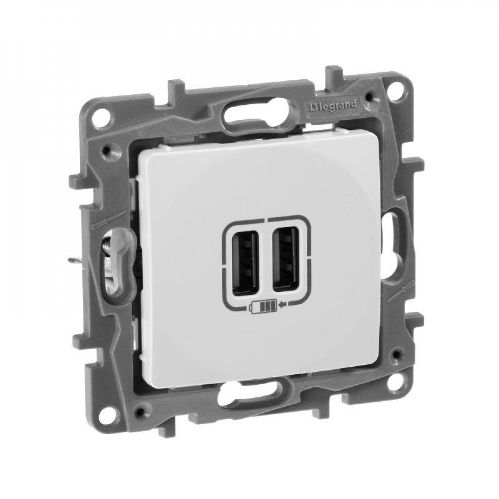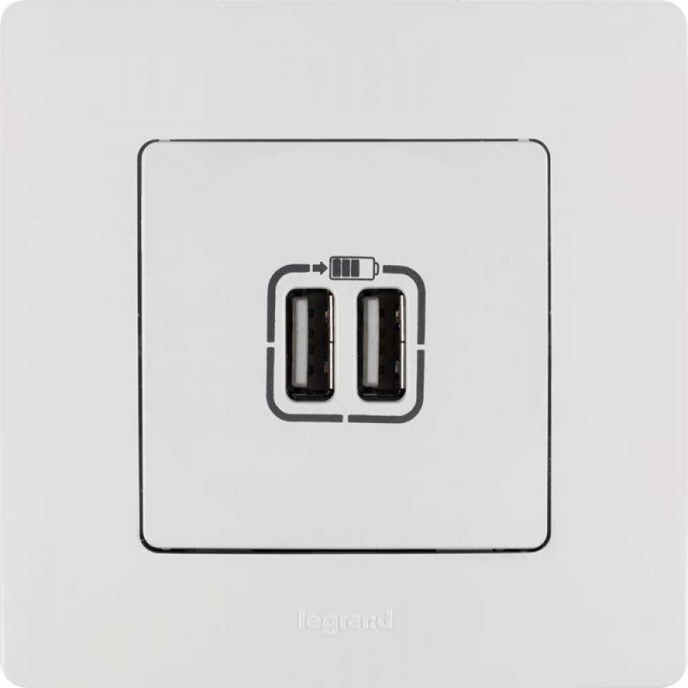 ETIKA Зарядное устройство с двумя USBразьемами 240В/5В 2400мА белый 672294, Розетка скрытого монтажа