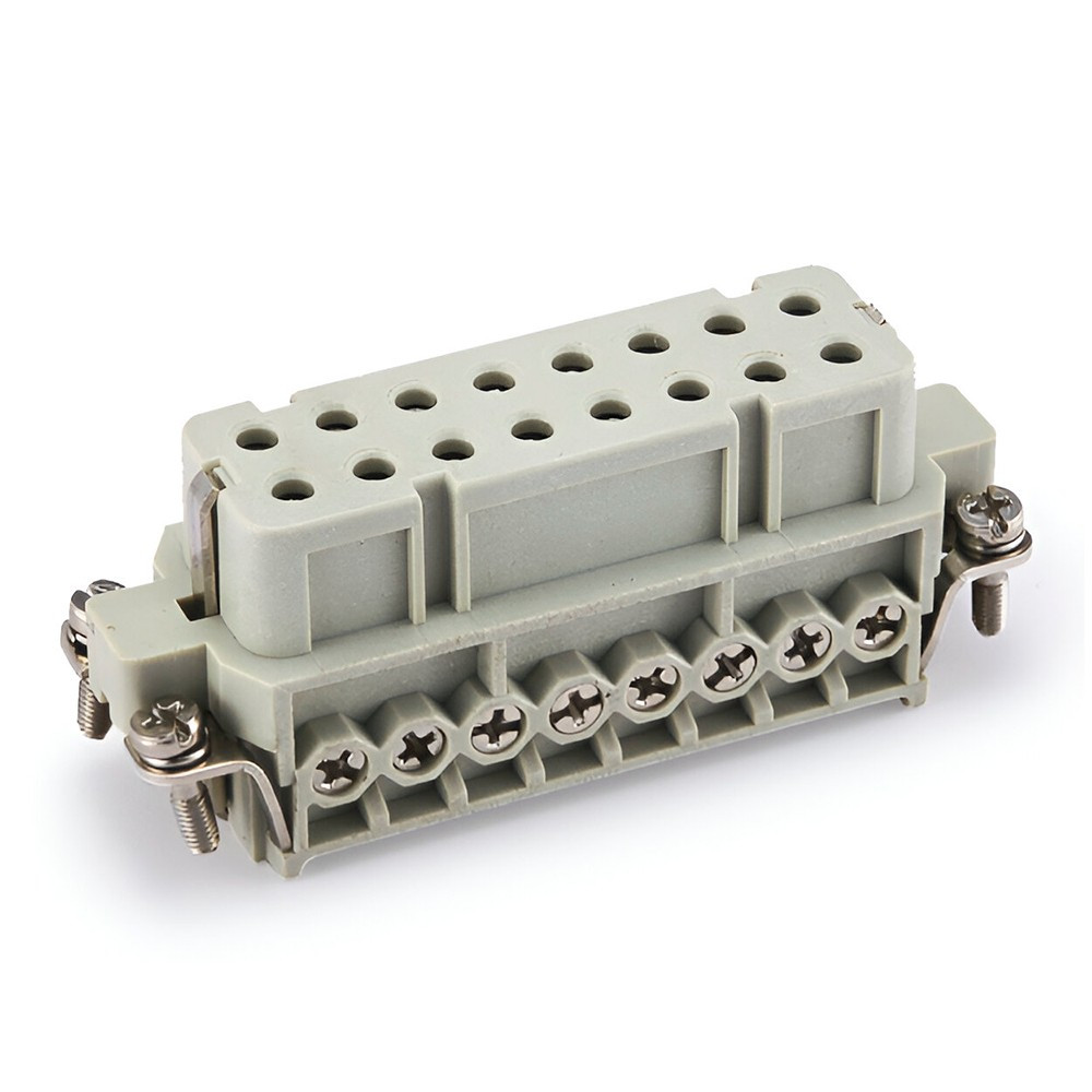 Розеточная контактная вставка HA-016-F, Розеточная контактная вставка, винтовая фиксация, 16 полюсов + PE, типоразмер 16A, 250V, 16A, сечение обслуживаемых проводников 0,75-2,5 мм кв, тип покрытия контактов: серебро