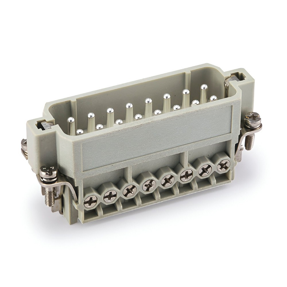 Доставка Вилочная контактная вставка HA-016-M , Вилочная контактная вставка, винтовая фиксация, 16 полюсов + PE, типоразмер 16A, 250V, 16A, сечение обслуживаемых проводников 0,75-2,5 мм кв, тип покрытия контактов: серебро