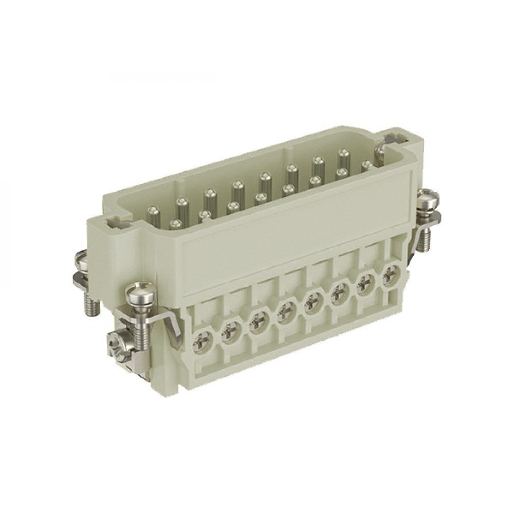 Вилочная контактная вставка HA-016-M, Вилочная контактная вставка, винтовая фиксация, 16 полюсов + PE, типоразмер 16A, 250V, 16A, сечение обслуживаемых проводников 0,75-2,5 мм кв, тип покрытия контактов: серебро