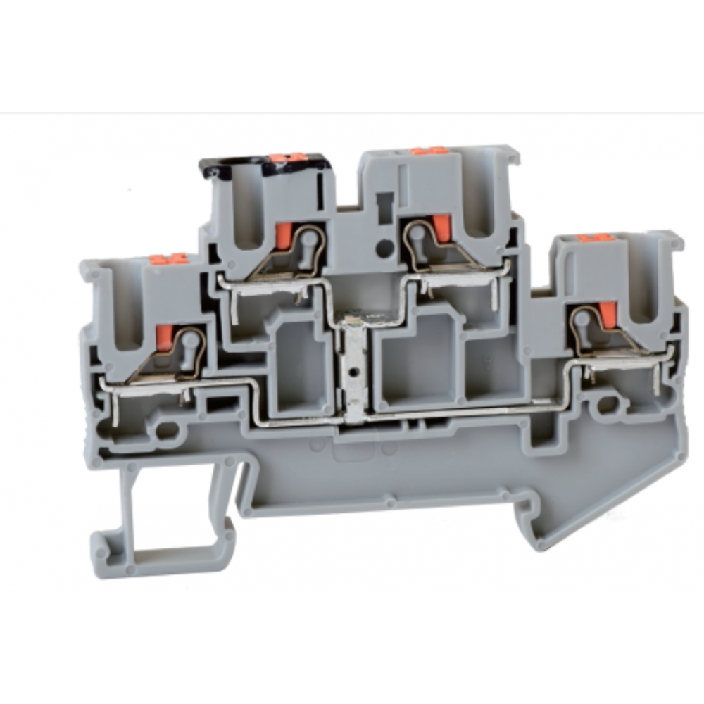 Этажная клемма, 2 этажа, межэтажное соединение, тип фиксации провода: Push-in, номинальное сечение: 2,5 мм кв., 24A, 800V, ширина: 3,5 мм, цвет: серый, тип монтажа: DIN35