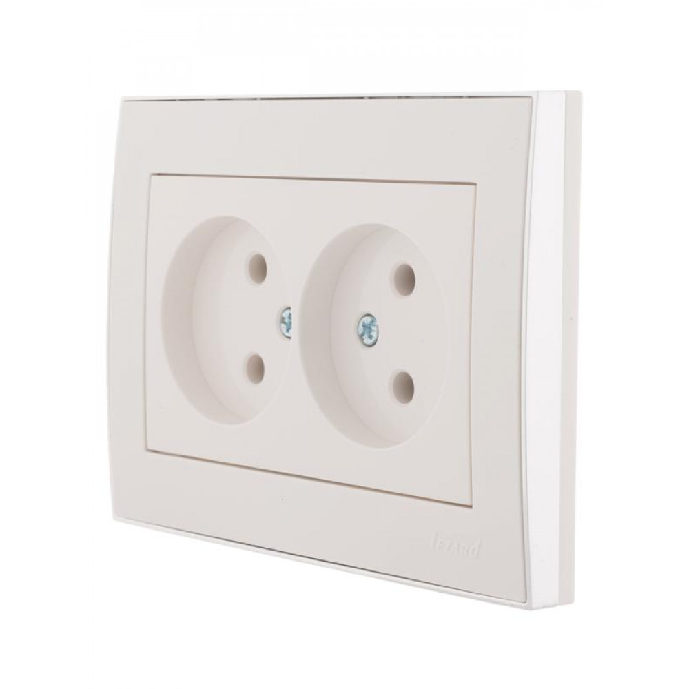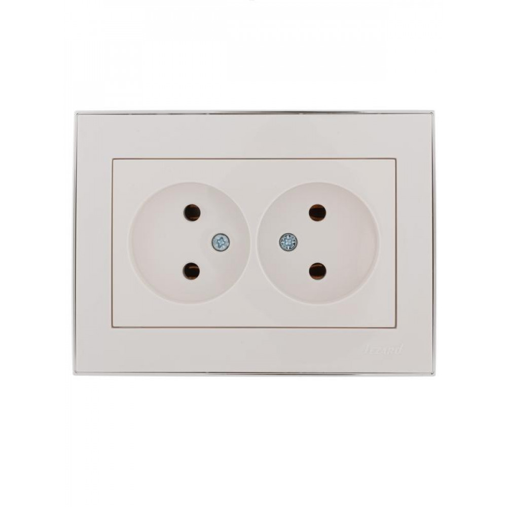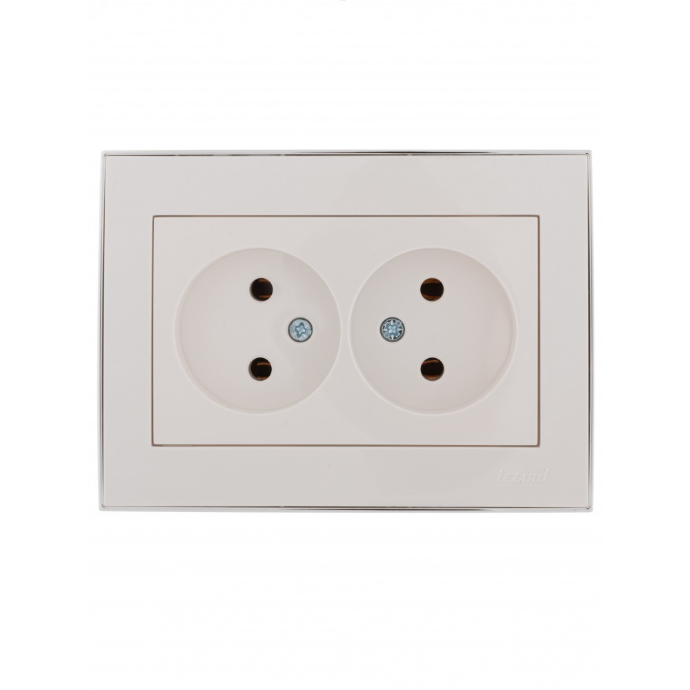 RAIN Розетка двойная без заземления керамика белая с боковой вставкой хром 703-0225-128, Розетка скрытого монтажа