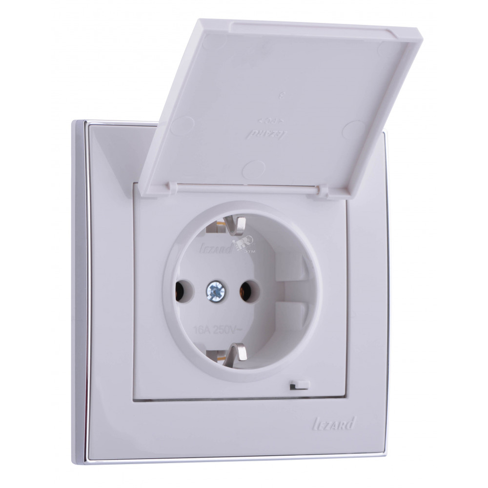 Описание RAIN Розетка с заземлением с крышкой керамика белая с боковой вставкой хром 703-0225-123