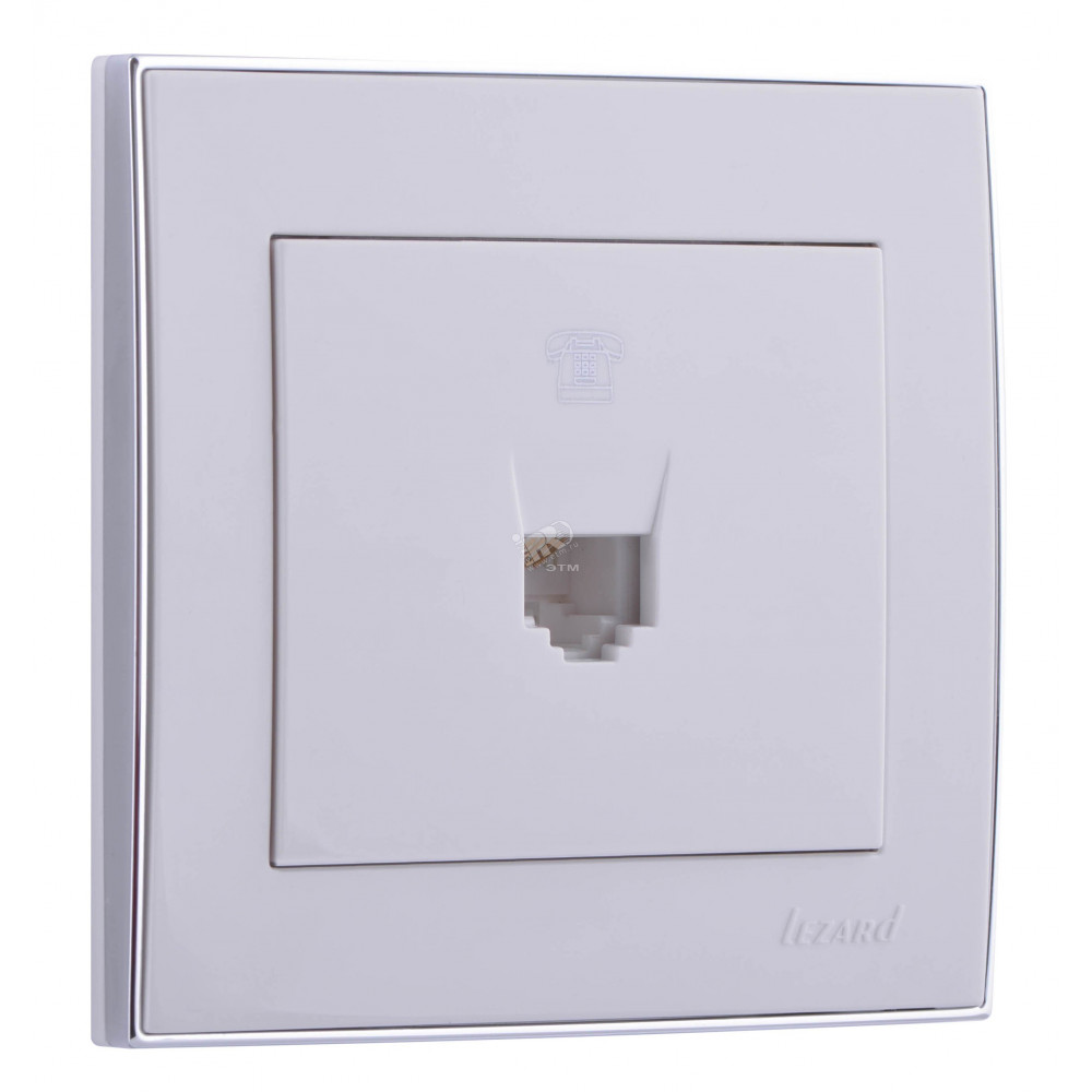 RAIN Розетка телефонная евро белая с боковой вставкой хром 703-0225-137, Розетка скрытого монтажа