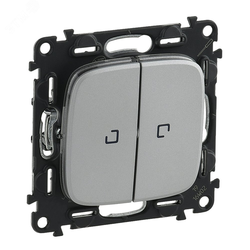 Valena ALLURE Переключатель двухклавишный 10АХ 250В с подсветкой С лицевой панелью Алюминий 752909, Выключатель и переключатель скрытого монтажа