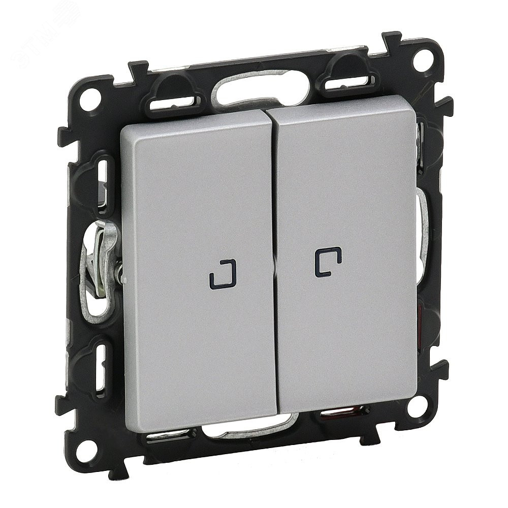 Valena LIFE Переключатель двухклавишный 10АХ 250В с подсветкой С лицевой панелью Алюминий 752609, Выключатель и переключатель скрытого монтажа
