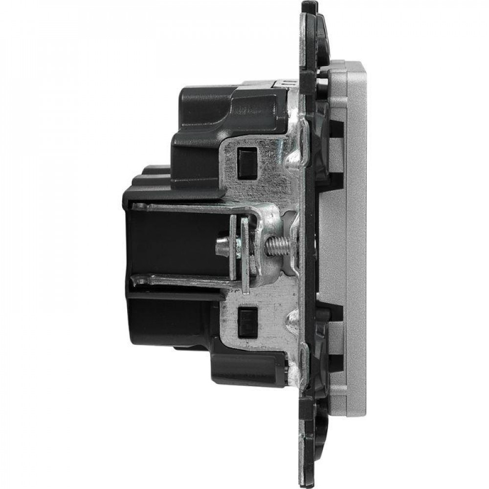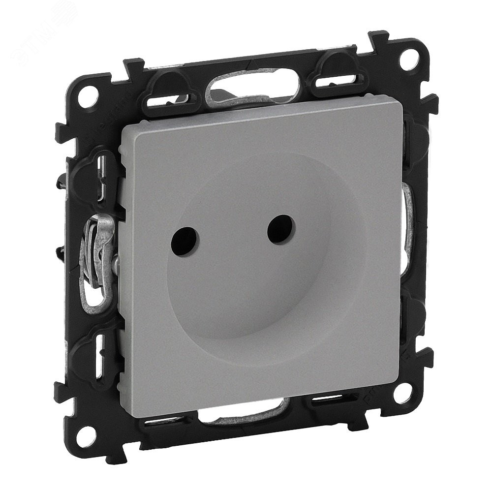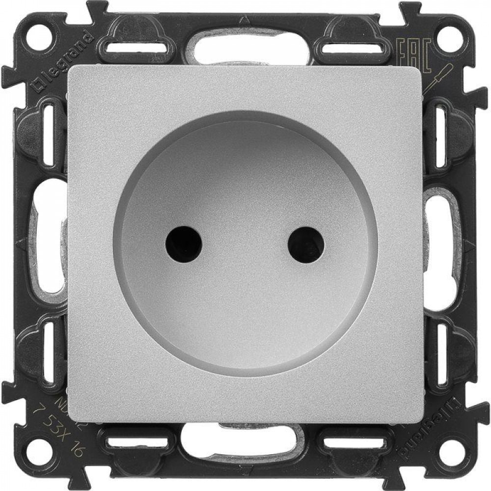 Valena LIFE Розетка силовая 2К 16А 250В c лицевой панелью алюминий со шторками безвинтовые зажимы 753616, Розетка скрытого монтажа