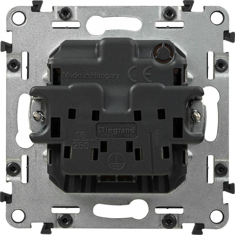 Описание Valena LIFE Розетка силовая 2К 16А 250В c лицевой панелью алюминий со шторками безвинтовые зажимы 753616