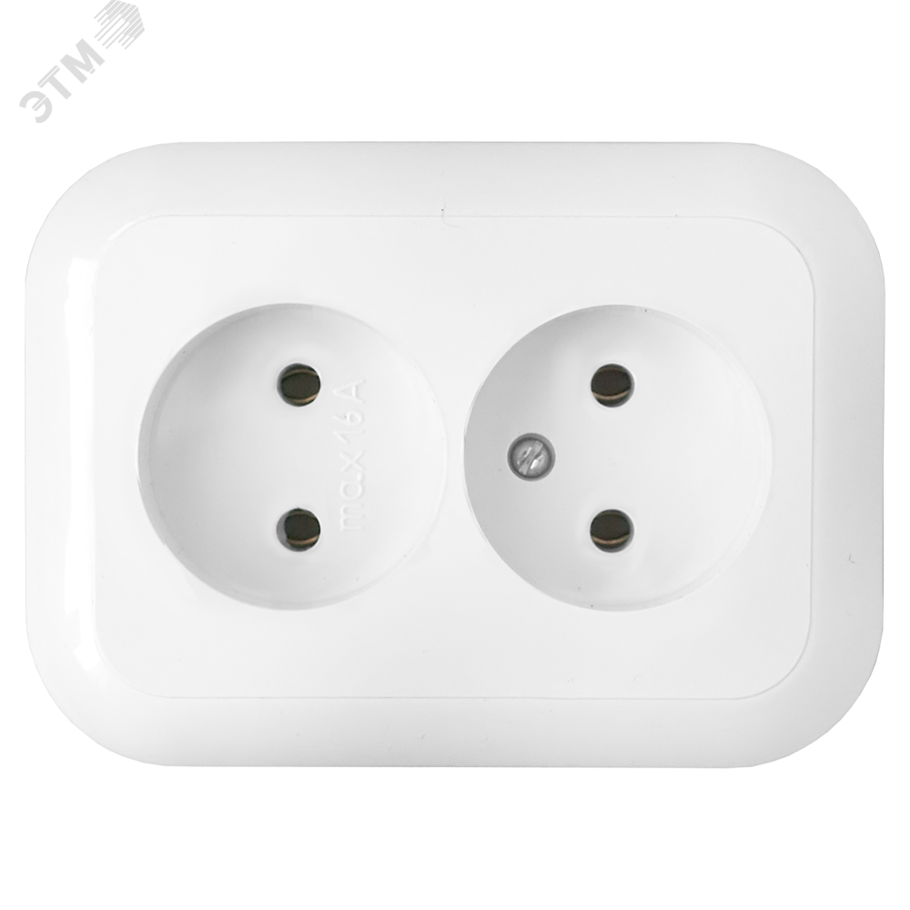 Розетка штепсельная двухместная скрытой установки. Предназначена для подключения электрических приемников с напряжением 230 В к электрической сети переменного тока. Изделие надёжно защищено от разрушительного воздействия ультрафиолетового излучения, не претерпевает видимых изменений при постоянных многочисленных эксплуатационных контактах. Надёжная контактная группа.