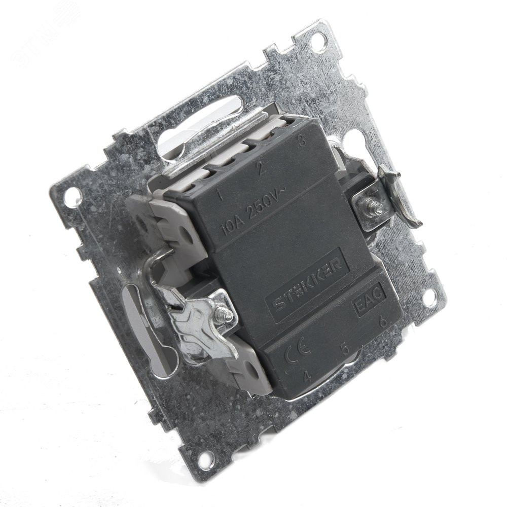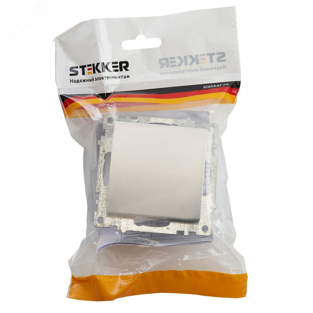 Описание Выключатель 1-клавишный (механизм) 250В, 10А, серия Катрин, серебро 39575