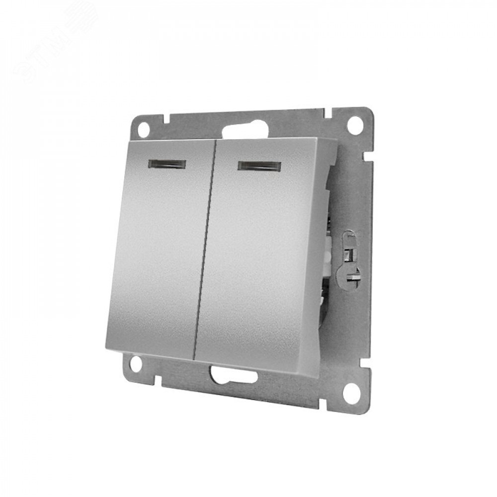 Выключатель двухклавишный с подсветкой UNIVersal серия Афина , с/у, 10А, 220В, серебро (еврослот), механизм A0123-S, Выключатель и переключатель скрытого монтажа