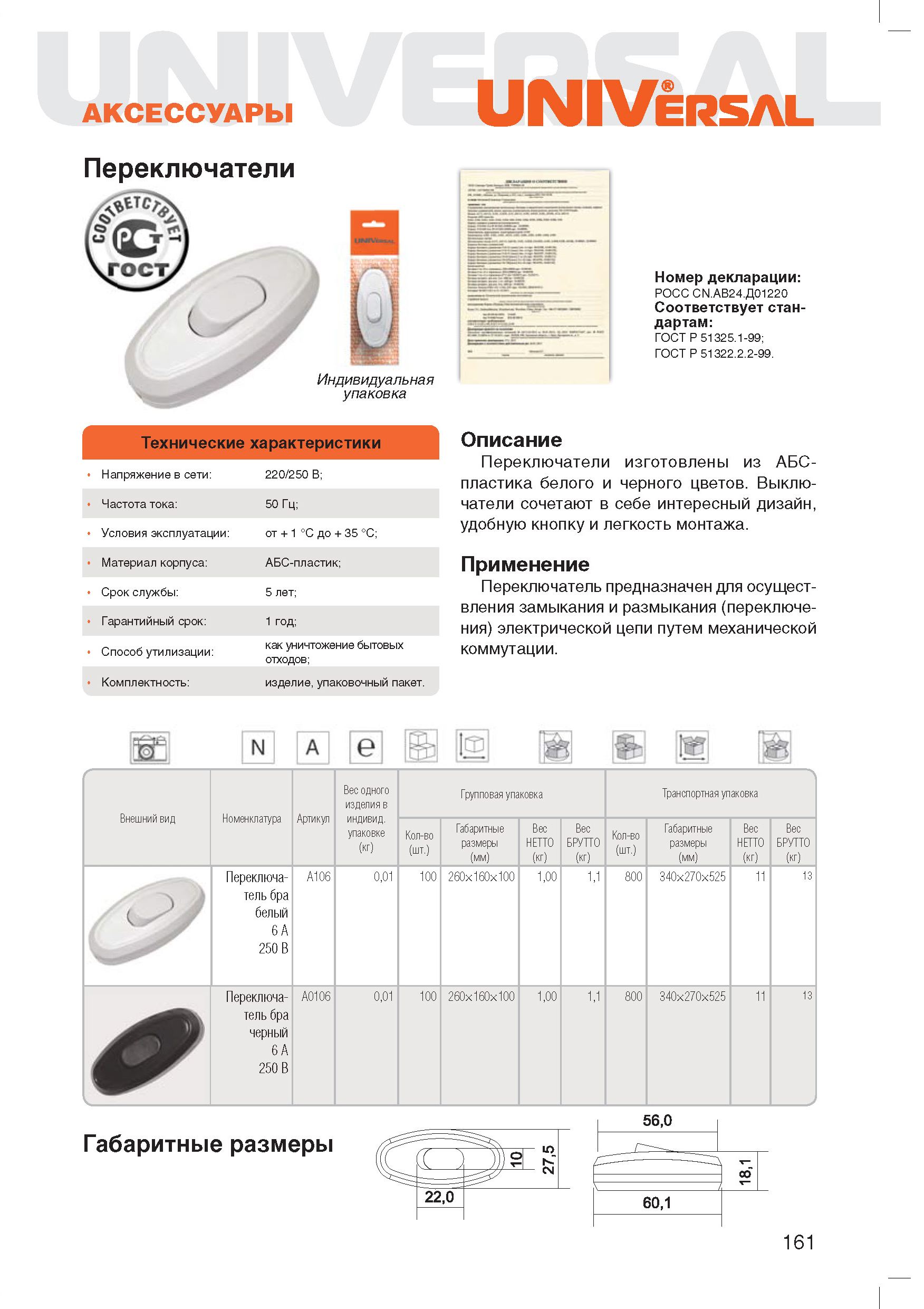Используются для производства шнуров для бра путём крепления их к проводу сечением от 0,5мм до 1,5мм Выключатели изготовлены из АБС-пластика белого и черного цветов, сочетают в себе интересный дизайн, удобную кнопку и легкость монтажа. Предназначены для замыкания и размыкания электрической цепи, используются в основном для управления светом светильников.