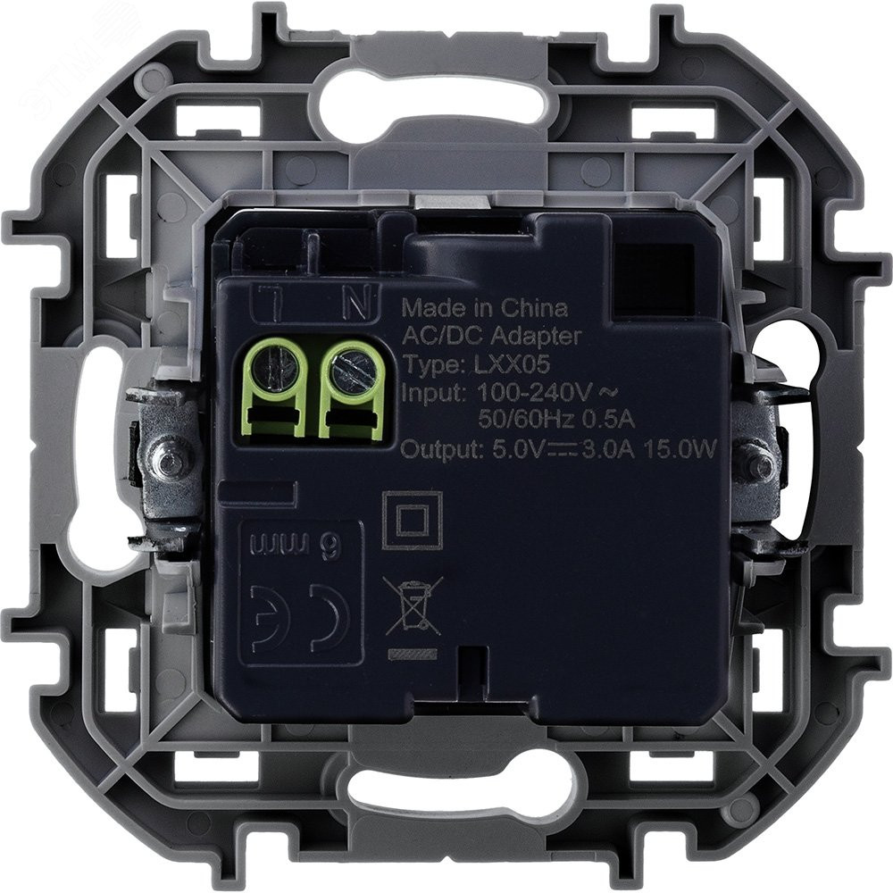 Зарядное устройство с двумя USB разьемами A C 240В/5В 3000мА INSPIRIA алюминий 673762, Розетка скрытого монтажа
