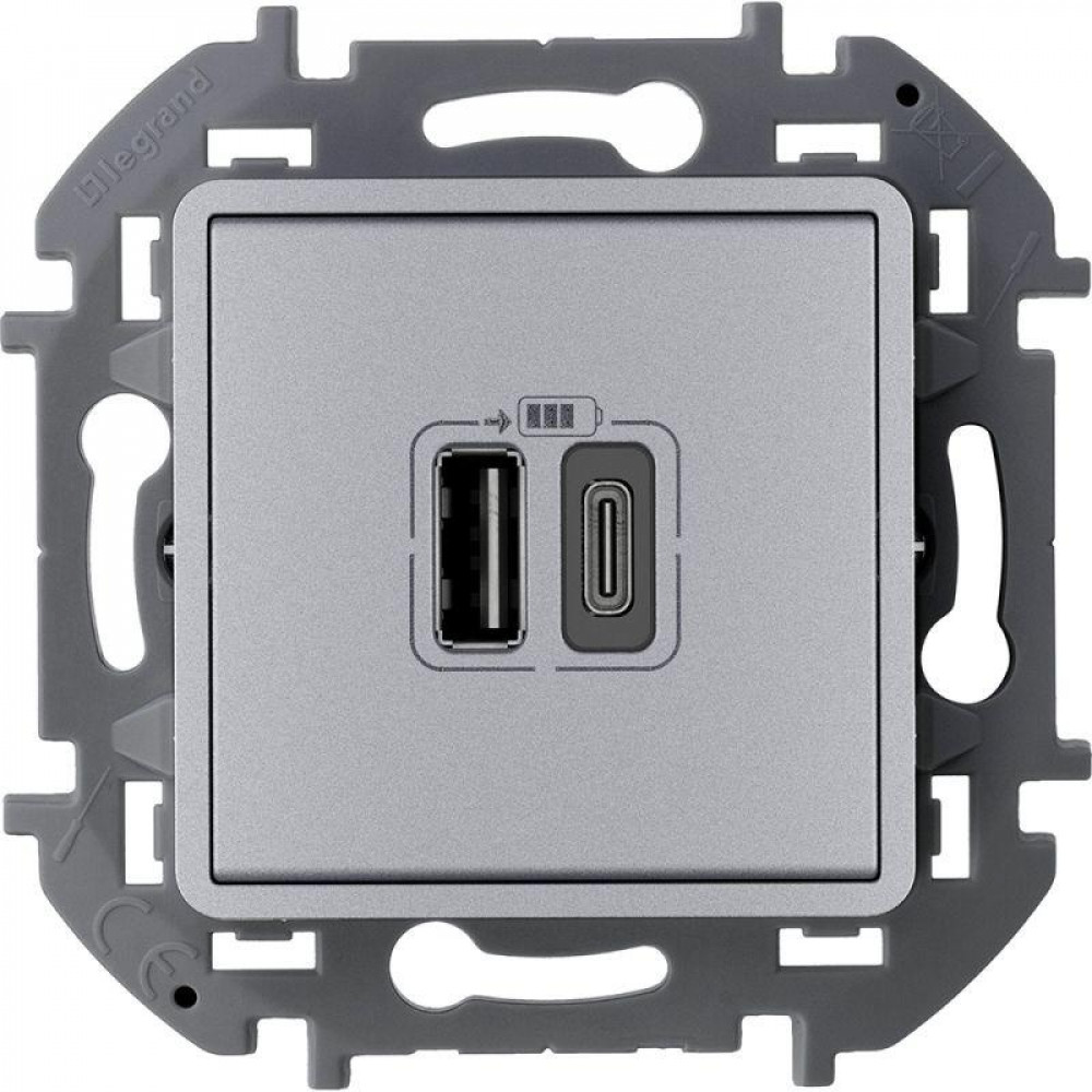 Зарядное устройство Legrand Inspiria для скрытого монтажа , тип А-тип С, цвет ''Алюминий''. Напряжение 240В/