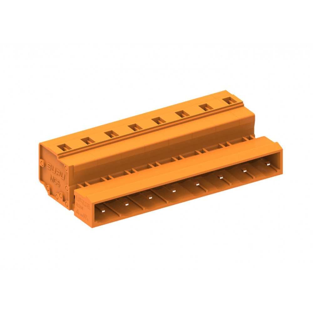 Вилочный разъем, прямой, на кабель, шаг: 7.62 мм, 5 полюсов, фиксация провода пружинная, исполнение: стандартное, 500V, 16A, цвет: оранжевый