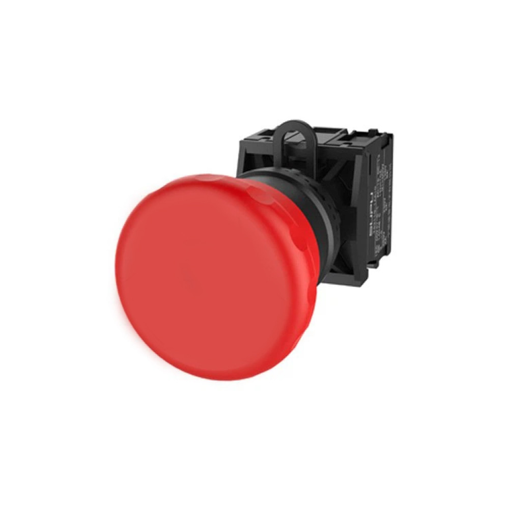 Кнопка аварийного останова, грибовидная, с блокировкой, без подсветки, пластиковое переднее кольцо, без контактной группы, диаметр головки кнопки 40 мм, диаметр посадочного отверстия: 22 мм, цвет: красный