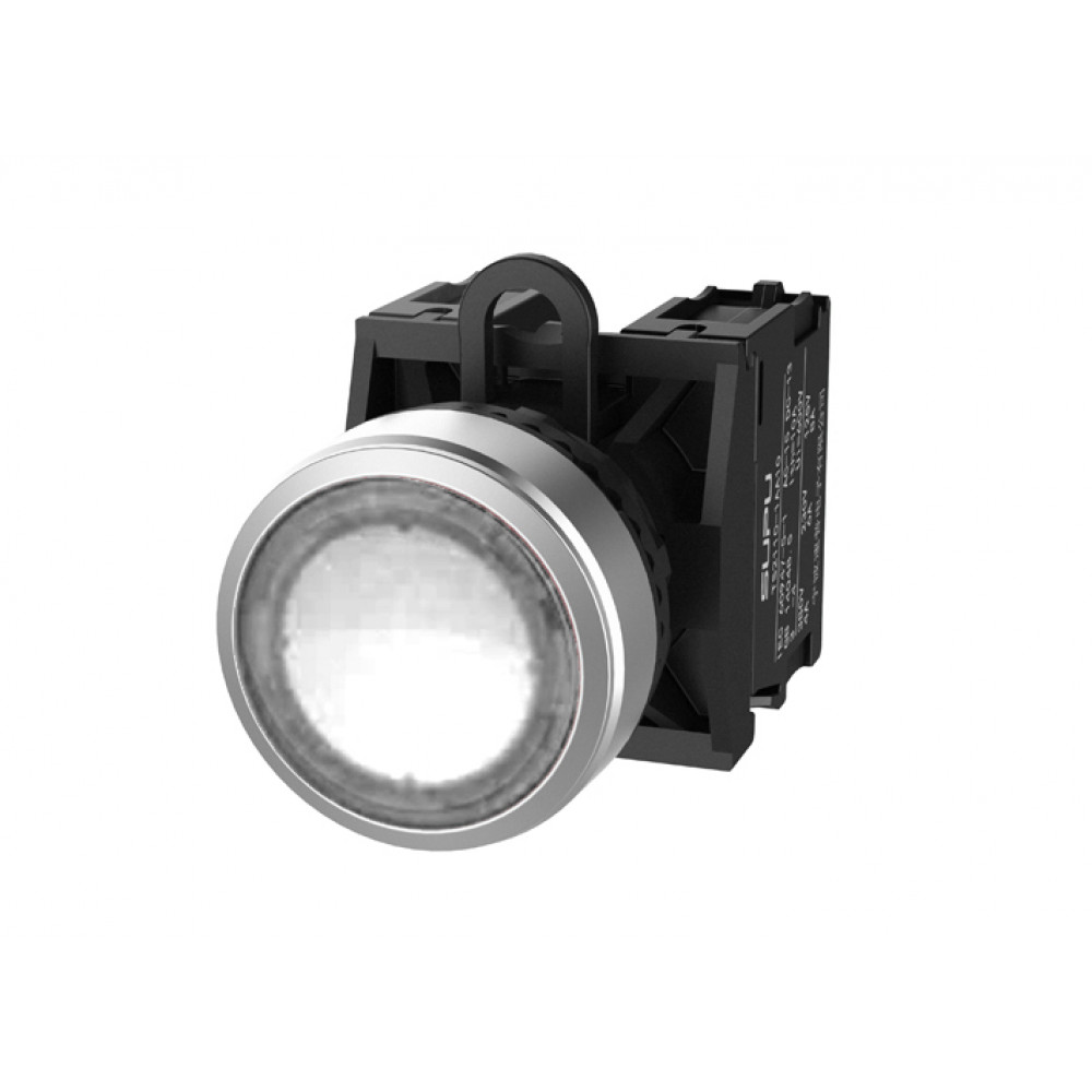 Кнопка круглая плоская, без блокировки, с подсветкой, алюминиевое переднее кольцо, без контактной группы, диаметр головки кнопки 29,5 мм, диаметр посадочного отверстия: 22 мм, цвет: прозрачный