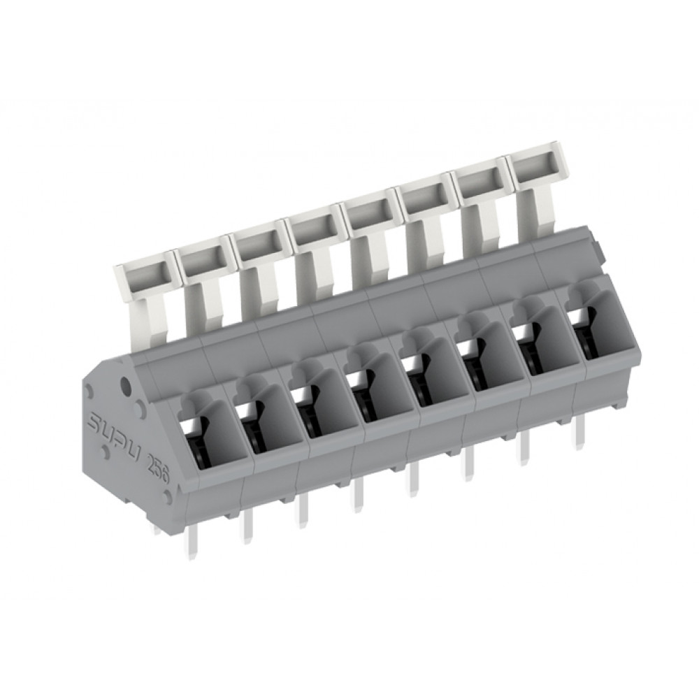 Клемма на плату 256306, Клемма, подвод кабеля 45 град., на плату, шаг: 5.0 мм, 6 полюсов, фиксация провода Push-in, исполнение: два вывода на полюс, рычажный зажим, 320V, 24A, цвет: серый
