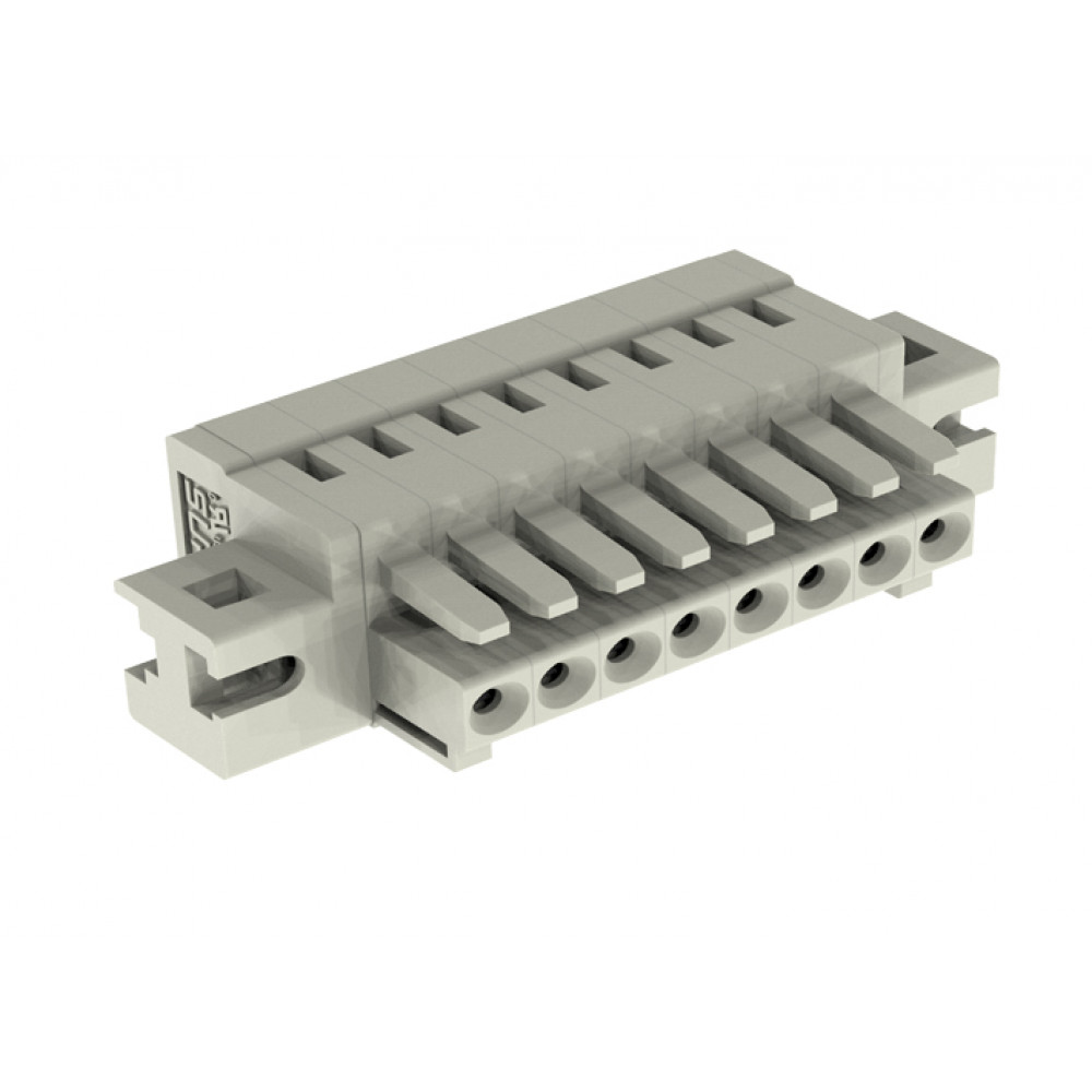 Розеточный разъем, прямой, на кабель, шаг: 3.5 мм, 7 полюсов, фиксация провода пружинная, исполнение: с монтажными фланцами, 160V, 10A, цвет: серый
