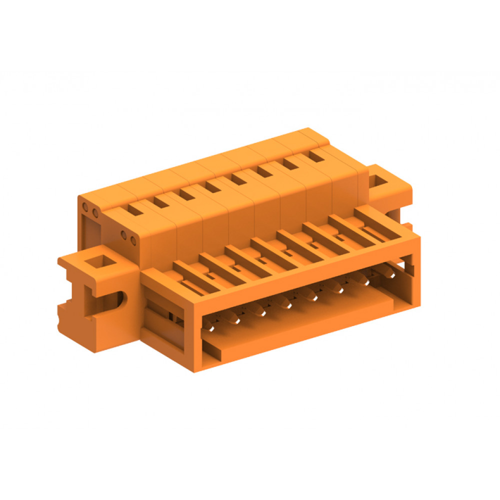 Вилочный разъем, прямой, на кабель, шаг: 3.81 мм, 24 полюса, фиксация провода пайкой, исполнение: с монтажными фланцами, 160V, 10A, цвет: оранжевый