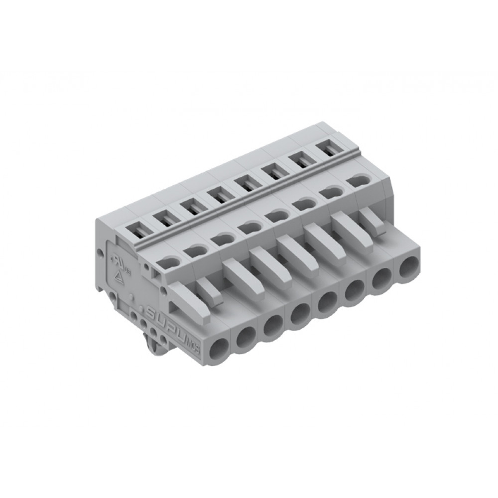 Розеточный разъем, прямой, на кабель, шаг: 5.0 мм, 8 полюсов, фиксация провода пружинная, исполнение: с якорными защелками в панель, 320V, 12A, цвет: серый
