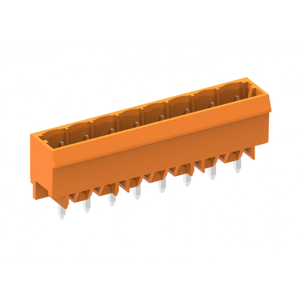 Вилочный разъем на плату 458203-01D, Вилочный разъем, вертикальный, на плату, шаг: 5.08 мм, 3 полюса, фиксация на плате пайкой, исполнение: длина выводов 3,8 мм, 320V, 12A, цвет: оранжевый