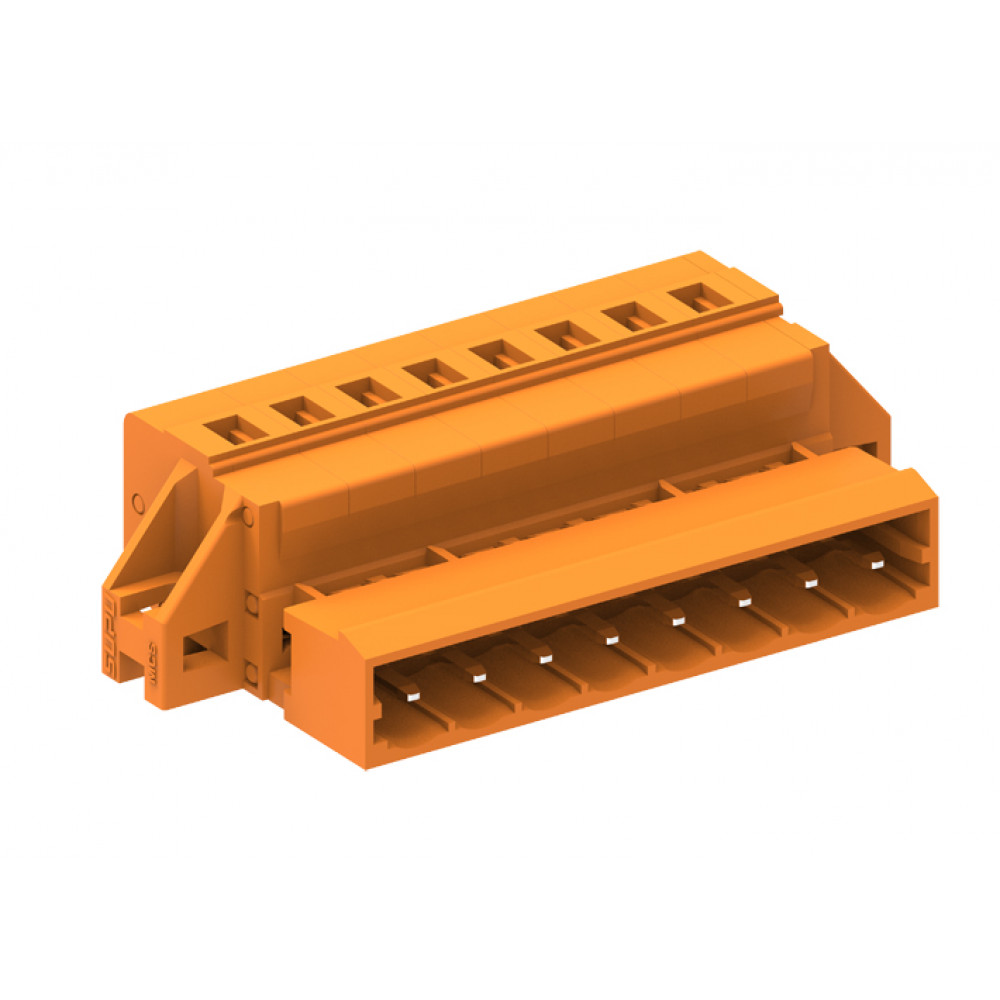 Вилочный разъем, прямой, на кабель, шаг: 5.08 мм, 24 полюса, фиксация провода пружинная, исполнение: с монтажными фланцами, 320V, 12A, цвет: оранжевый