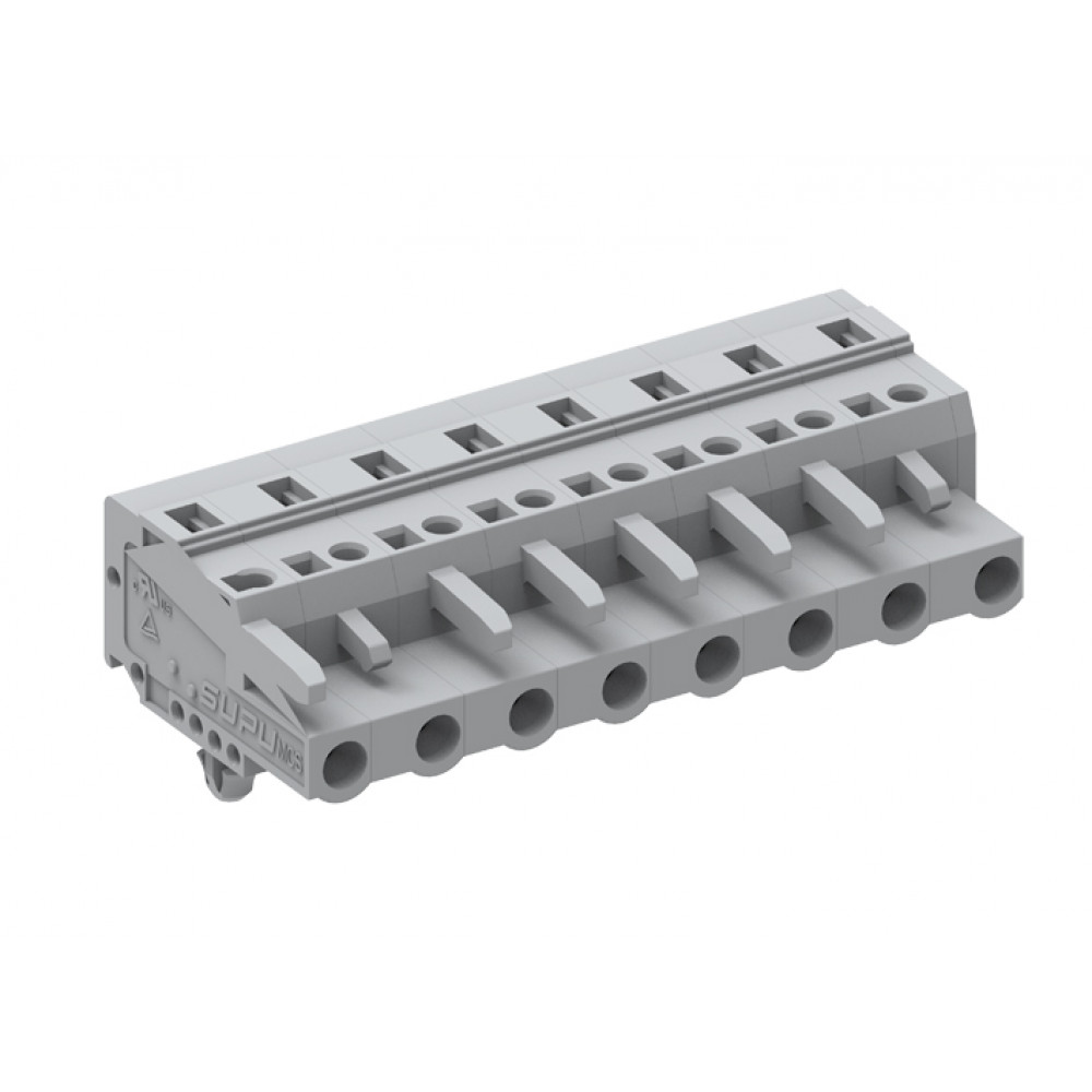 Розеточный разъем на кабель 475124/030, Розеточный разъем, прямой, на кабель, шаг: 7.5 мм, 24 полюса, фиксация провода пружинная, исполнение: с якорными защелками в панель, 500V, 16A, цвет: серый