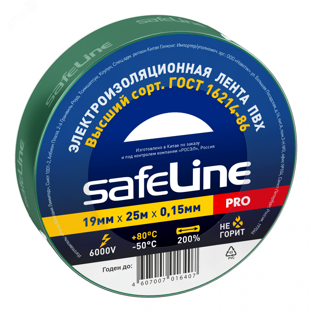 Изоляционная лента Safeline серии PRO предназначена для проведения электромонтажных работ при напряжении до 600V и рекомендуется для профессионального и бытового применения. Изолента Safeline устойчива к воздейтвиям UV-лучей, истиранию, старению, влажности и коррозии металлов. Для обеспечения высоких стандартов качества при производстве изоленты используется два уровня контроля. Высший сорт ГОСТ 16214-86.