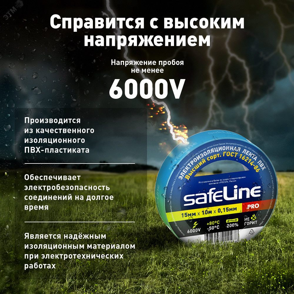 Описание Изолента ПВХ син.15мм 10м Safeline 9359