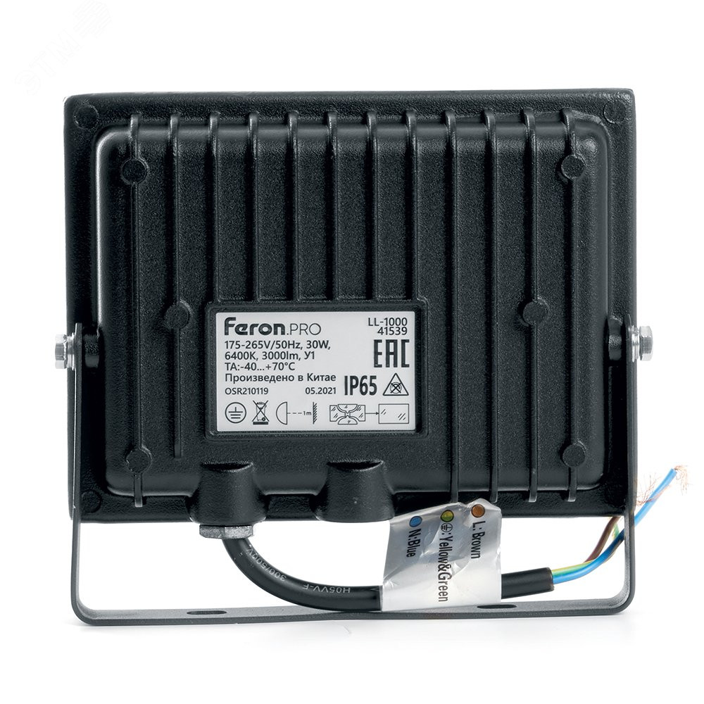 Прожектор светодиодный ДО-30w 6400К 3000Лм IP65 черный Feron.PRO 41539, Прожектор
