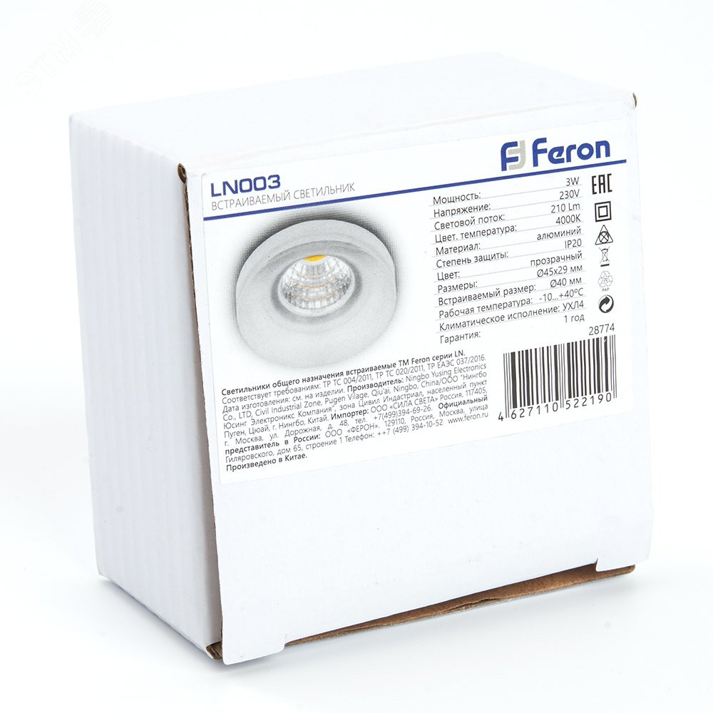 Доставка Светильник светодиодный ДВО-3w 4000K 210Лм прозрачный 28774