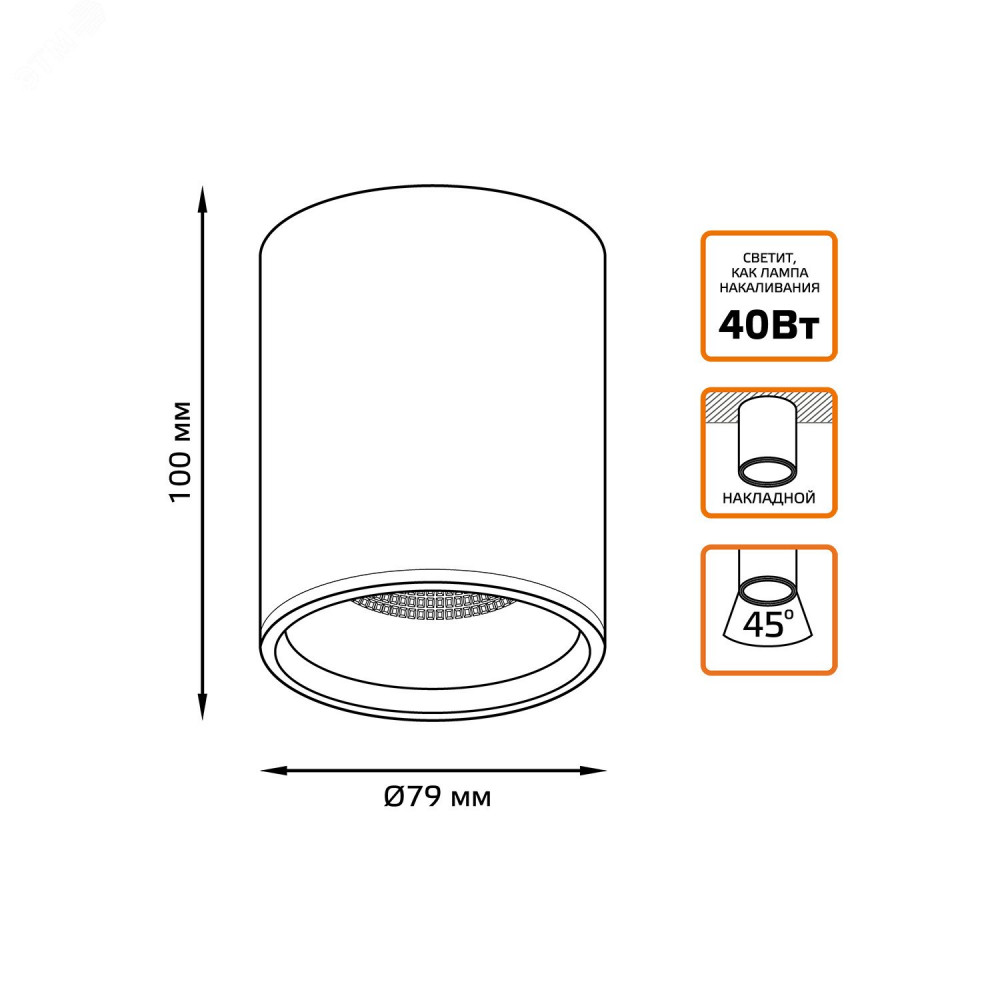 Описание Светильник светодиодный накладной ДПО 12 Вт 900 лм 3000К 170-240В IP20 79х79х100мм монт d79мм Алюминий Белый Overhead Gauss HD030