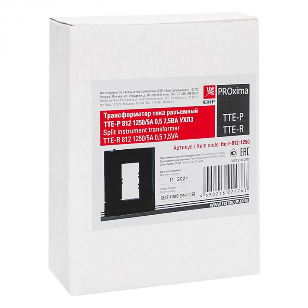 Доставка Трансформатор тока ТТЕ-Р 812 1250/5А 0,5 7,5ВА УХЛ3 EKF PROxima