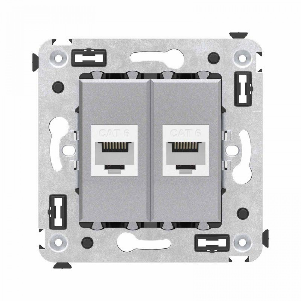Розетка компьютерная 2-м СП Avanti "Закаленная сталь" RJ45 кат.6 без шторок механизм DKC 4404694, Розетка скрытого монтажа