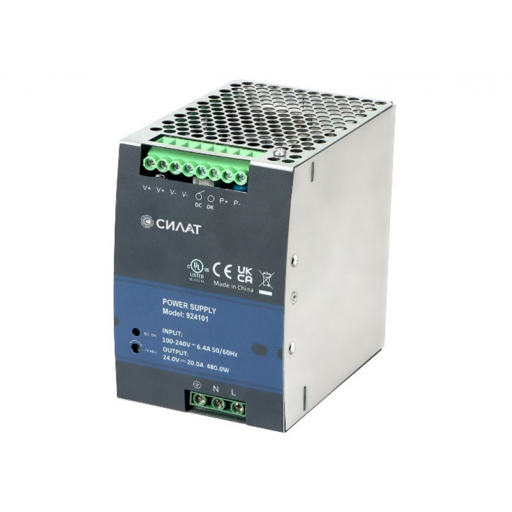 Источник питания 24 V DC/20 A, 902110, Источник питания, однофазный, 24VDC / 20A, 480W, диапазон входн. напр.: 90 - 264VAC / 127 - 370VDC; габариты (мм): 142х125х85,5, монтаж: на DIN рейку