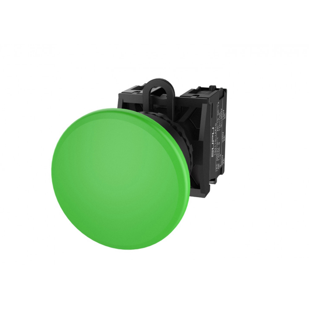 Кнопка грибовидная, без блокировки, без подсветки, пластиковое переднее кольцо, без контактной группы, диаметр головки кнопки 40 мм, диаметр посадочного отверстия: 22 мм, цвет: зеленый